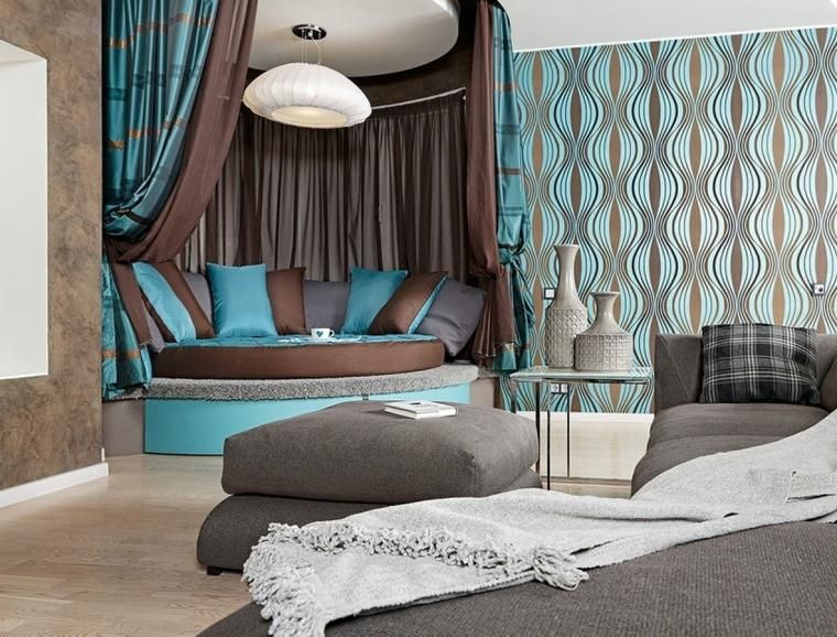 Чтобы придать помещению таинственности и необыкновенности, стоит сделать на потолке объемные элементы. - Компактной мебели. Очень важно, чтобы мебель была компактной и подходила по цвету к разнообразным оттенкам.