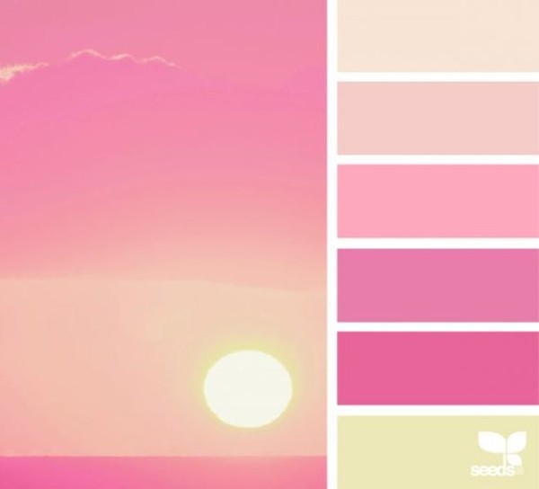 Оттенки розового сильно различаются между собой. Ярко-розовые тона совсем не похожи на приглушенные лиловые или теплые коралловые оттенки. Единственное, что их объединяет это средняя по светлоте насыщенность и все оттенки будут теплыми по сравнению с определенно холодными (например, синим).