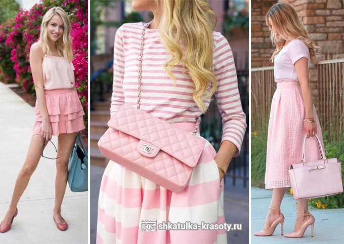 Совсем другое впечатление производит сочетание светло-розового или пепельно-розового с белым: смотрится нежно и нежно! Такое сочетание уместно в ансамбле костюма любого назначения – вечернего, спортивного или повседневного – многое зависит от фактур используемых материалов.