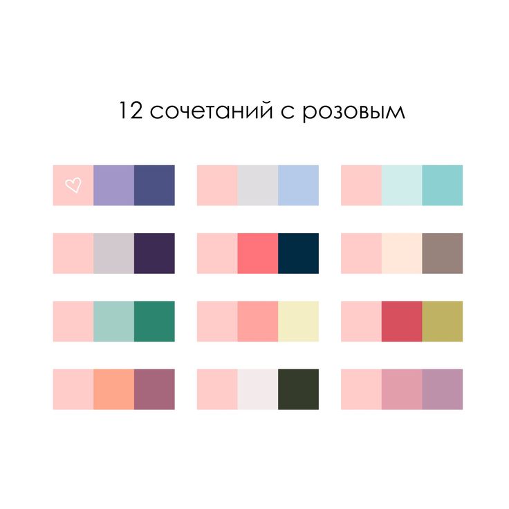 В данной статье рассмотрены 4 основных оттенка розового цвета, которые по-разному сочетается с другими оттенками. Каждый тон рассмотрен отдельно и имеет полноценную палитру, которая максимально подчеркнёт красоту и особенности оттенка.