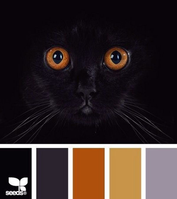 Черный и оранжевый вызывают в воображении Хэллоуин, а черный и медный — чистый гламур.