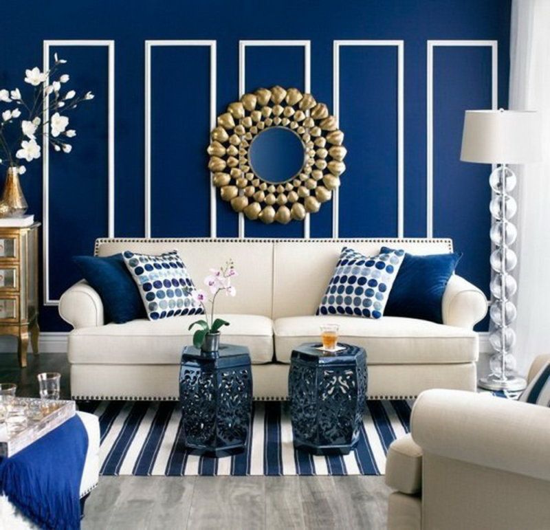 Эта потрясающая гостиная оформлена в нескольких оттенках синего в сочетании с белым, серым и золотым. Это прекрасный пример огромного влияния нескольких золотые акценты можно разместить в комнате. Просто убедитесь, что все ваши синие цвета совпадают, и у вас будет красивая гостиная, в которой можно проводить время.
