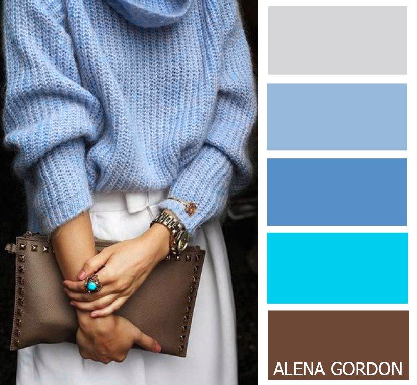 Все эти оттенки синего прекрасно сочетаются с коричневым цветом. В частности, темно-синий и коричневый — одно из самых популярных и классических цветовых сочетаний. Кстати, он особенно популярен в мужской моде!