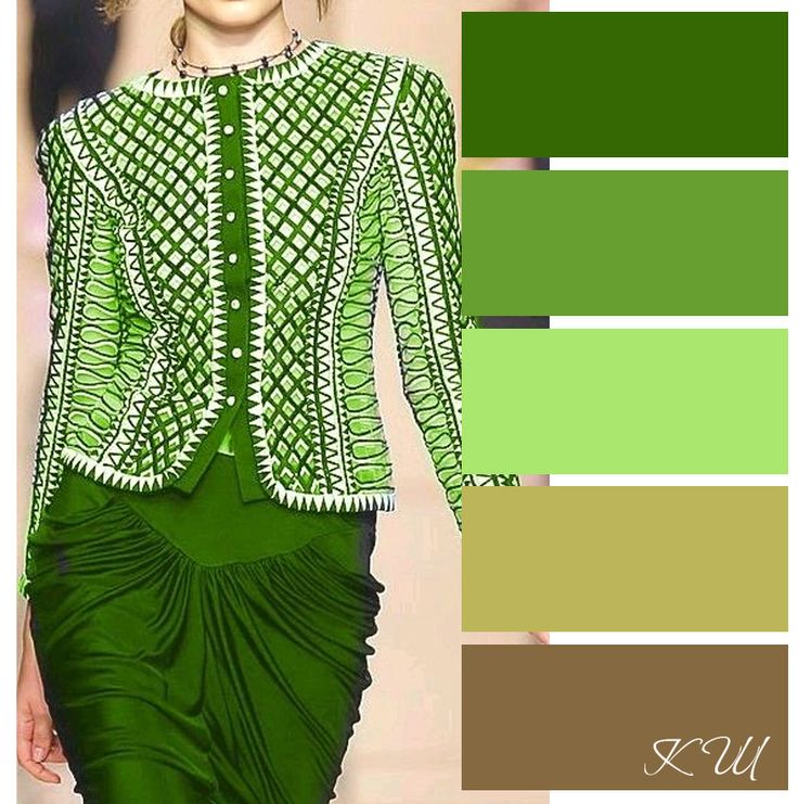 Это основа лесного стиля в одежде. Подбирайте несколько зеленых оттенков разной насыщенности и разбавляйте палитру одним-двумя коричневыми тонами.