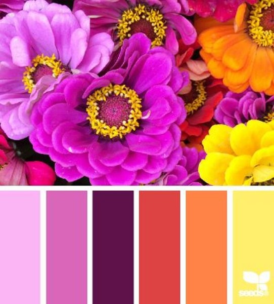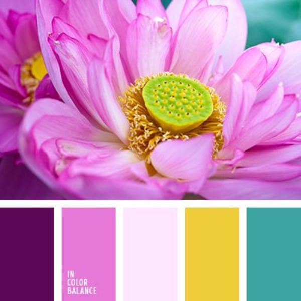 Чем меньше площадь цветового пятна, тем ярче можно брать оттенок, чем больше площадь, тем деликатнее тон.