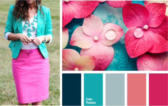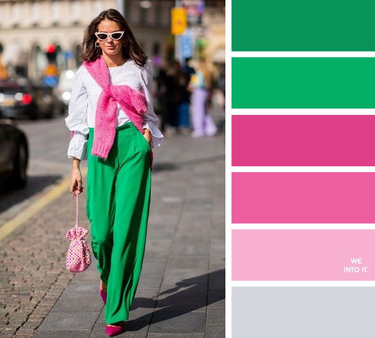Зеленый создает идеальный контраст в сочетании с ярко-розовым.
