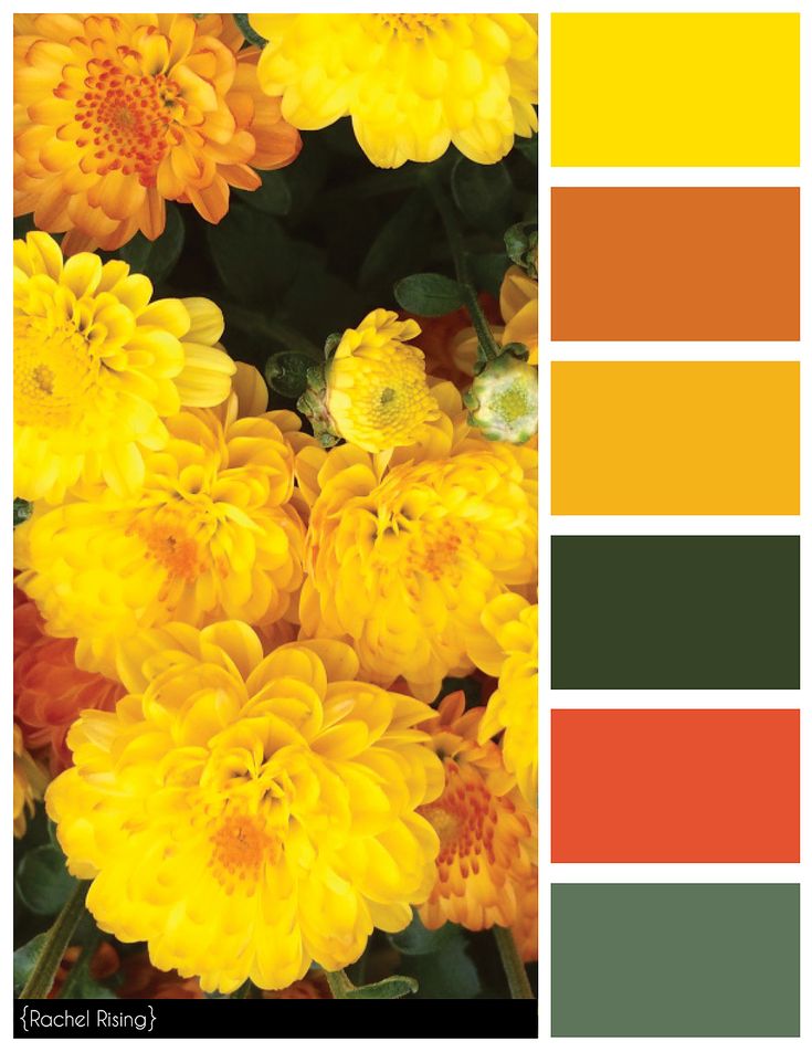 Маслянистые оттенки гармонируют с оранжевым и коричневым, лимонные — с лиловым и серым.