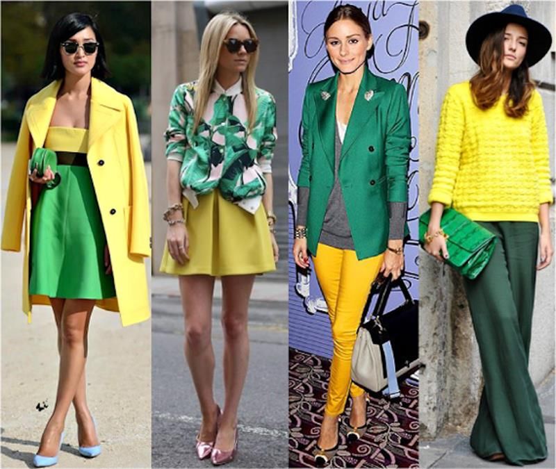 Соедините эти два предмета, как хотите, и вы получите идеальный наряд. Будь то желтые брюки и зеленая рубашка, или зеленая юбка с желтой рубашкой, полностью зеленая или полностью желтая с аксессуарами другого цвета, вы не преминете произвести впечатление.