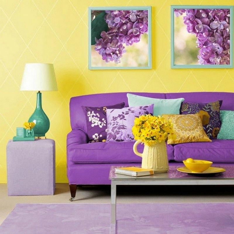 Сочетание желтого и фиолетового цвета в интерьере фото