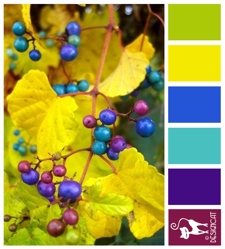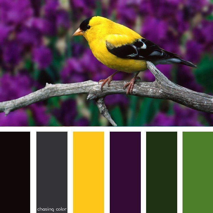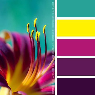 Так может быть и в случае с желтым цветом, объединенным с разными оттенками фиолетового.