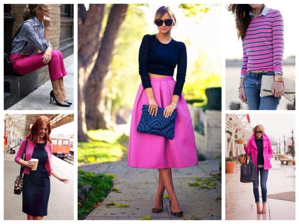 Для примера рассмотрите комбинации с королевским розовым, светло-розовым, креветковым, закатным, малиновым.
