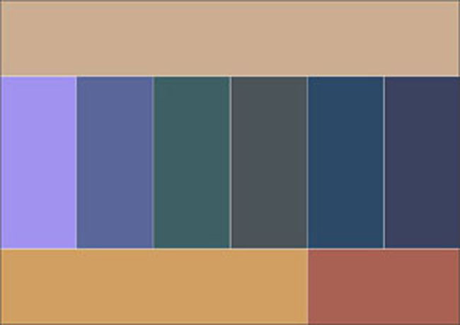 Добавить простора, света с помощью белого, углубить основной тон темным синим и оттенить его спокойную природу серо-зеленым. Цветовая гамма состоит из приглушенно-белого, средне-серого, зеленой полыни, сине-голубого, дуба, берлинской лазури.