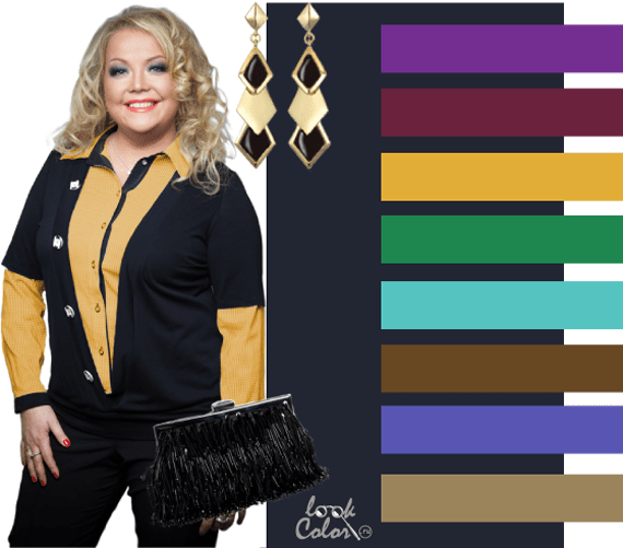 Богатый темно-синий фон с фиолетовым отливом прекрасно сочетается с золотым, создавая атмосферу роскоши и благополучия, поэтому эта цветовая гамма может подойти для разного вида торжеств, например, ужин в честь дня Нового Года. Светлые оттенки, как белый, золотой ярка выделаются на фоне темного основного цвета, придавая всему графическую четкость. Сочетание включает в себя бледно-желтый, желто-коричневый,
