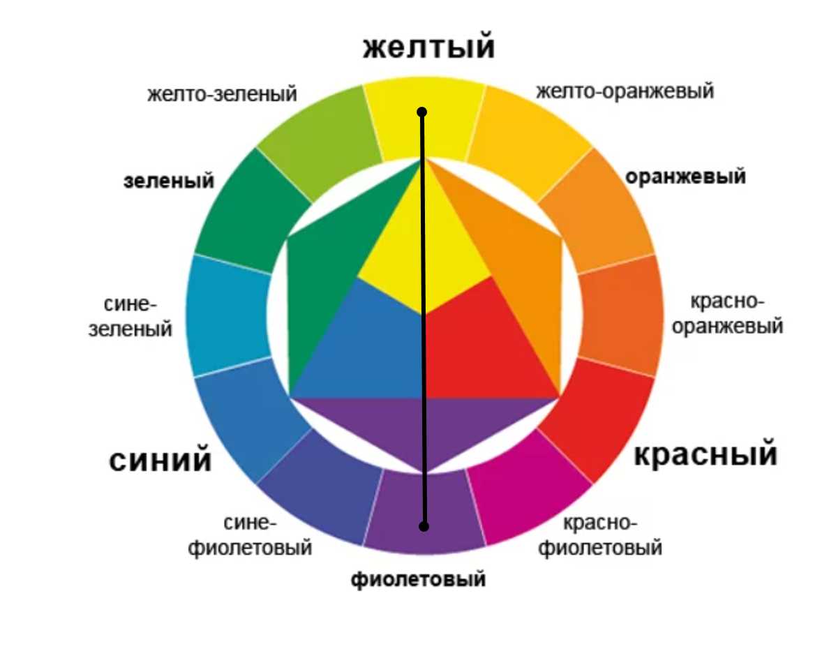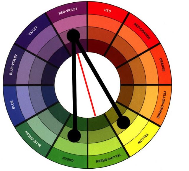 Примером такой триады могут послужить желтый, зеленый и красно – фиолетовый.