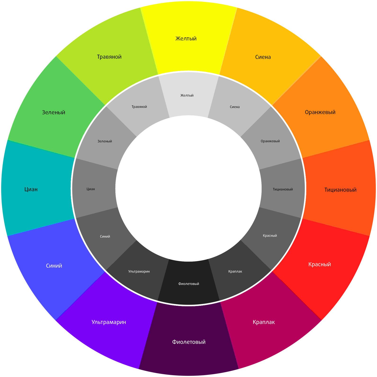 Стандартный цветовой круг рассчитан на 12 цветов. Все эти цвета достаточно яркие, и не всегда уместны в использовании. Но что делать, если эти цвета нам не подходят, и нужны другие?