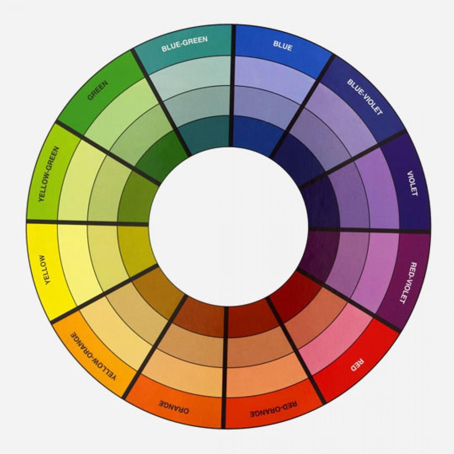 Цветовой круг имеет три преобладающих образца: первичные цвета, вторичные цвета и третичные цвета.Основные цвета