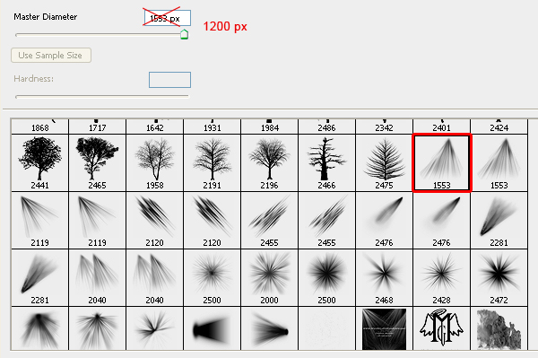 Эти кисти часто называют эффектом «Восходящее солнце». Большая кисть прямо под ней размером 2500 x 2500 идеально подходит для ваших будущих проектов.