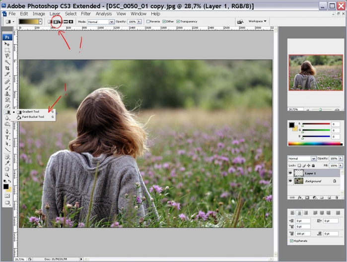 Шаг 8: Переместите этот градиент на изображение в нужное место.