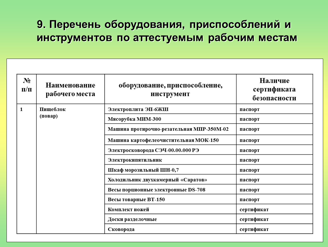 Шаблон перечня вы найдете в нашей шпаргалке.