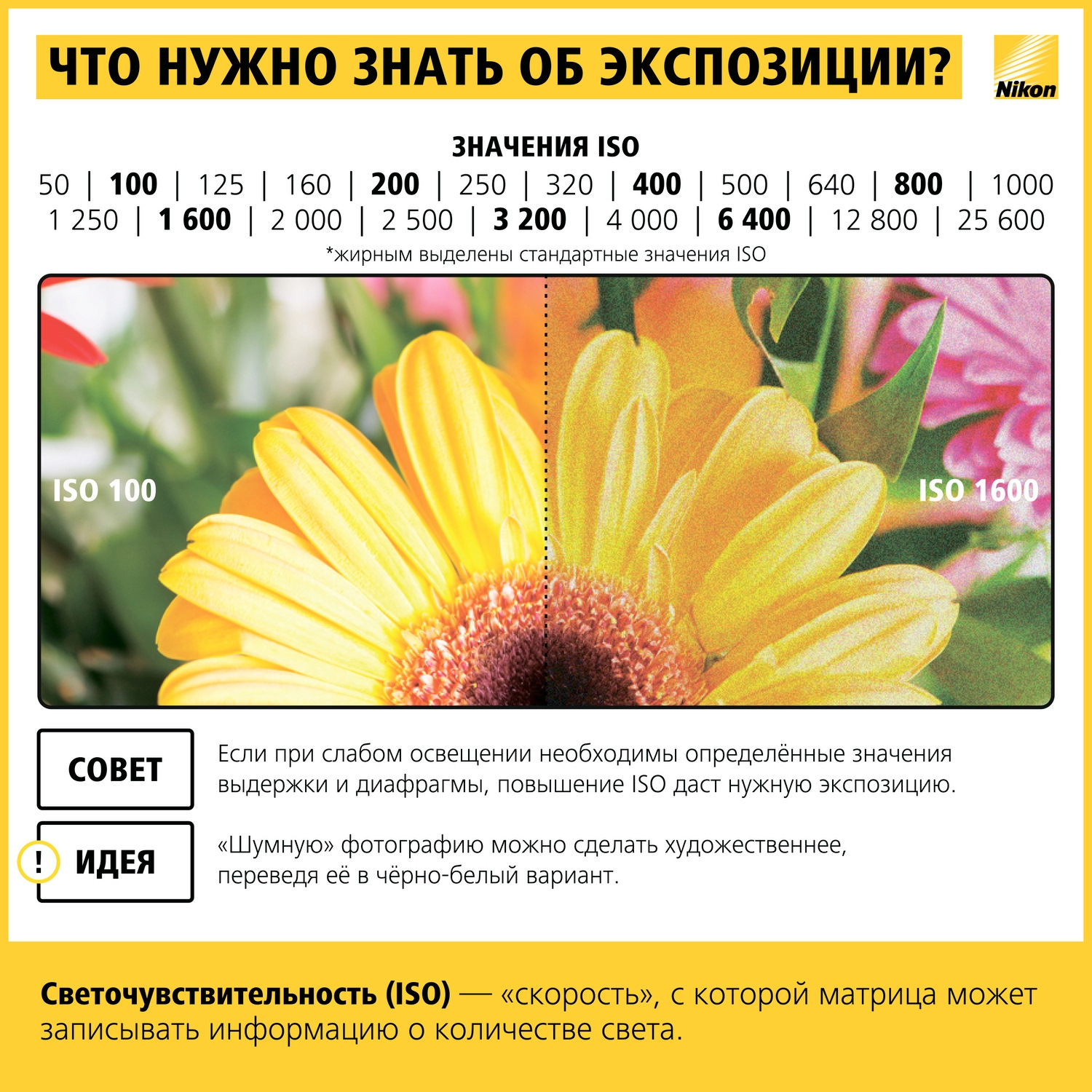 Так что не используйте ISO 3200 или 6400, если вы не хотите, чтобы фотография была с большим количеством «цифрового шума».