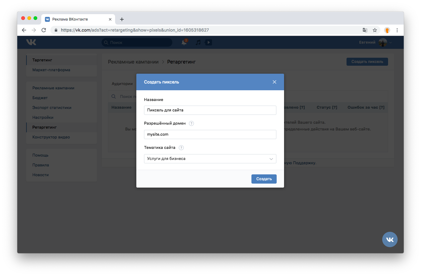 Π¨Π°Π³ 2. ΠΠ°ΡΡΡΠΎΠΉΡΠ΅ ΡΠ΅Π»ΠΈ ΠΊΠ°ΠΌΠΏΠ°Π½ΠΈΠΈ ΠΈ Π²Π²Π΅Π΄ΠΈΡΠ΅