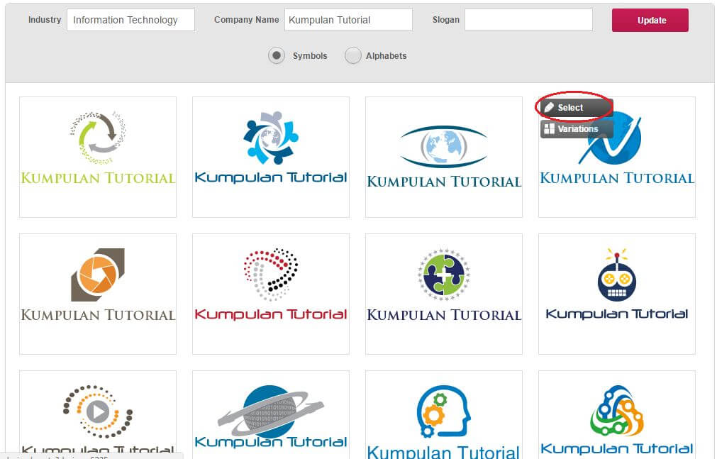 Нажмите на опцию «Логотип». - Введите «логотип круга» в строке поиска и выберите шаблон логотипа круга.