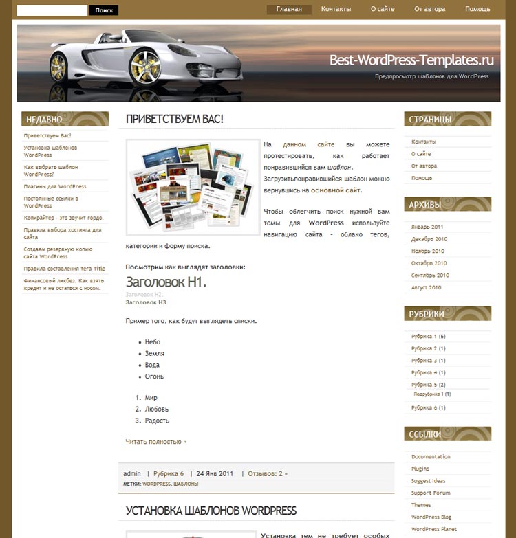Шаблоны страниц и записей в WordPress