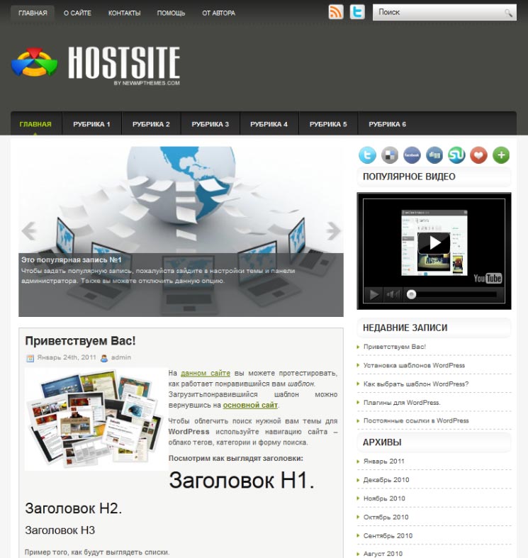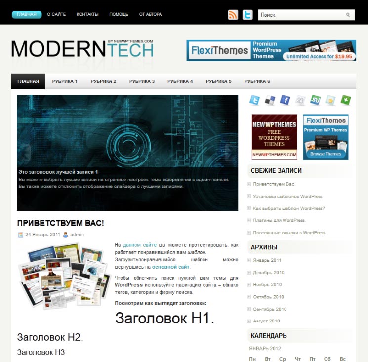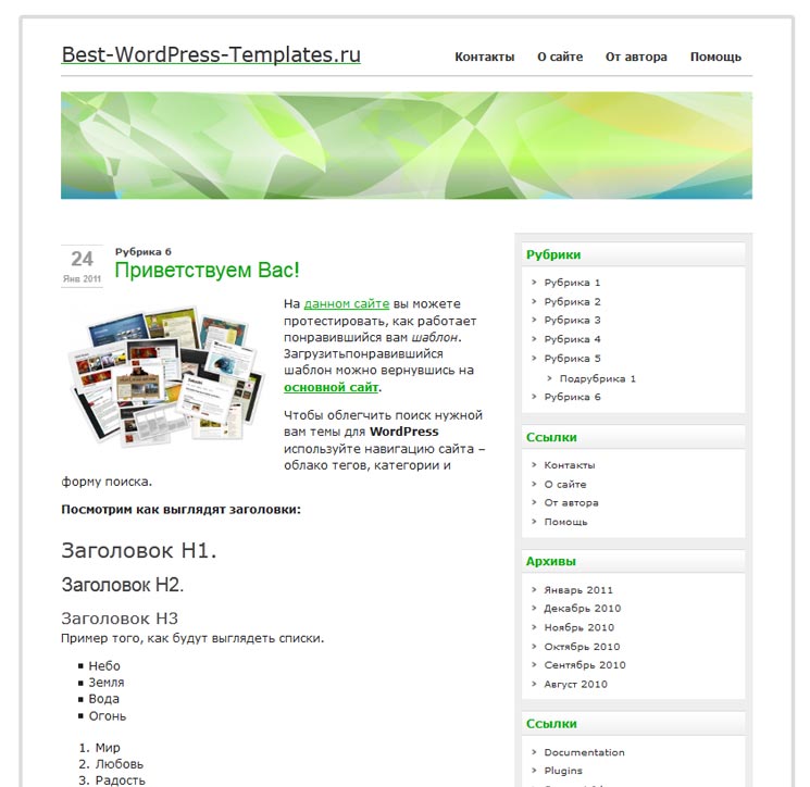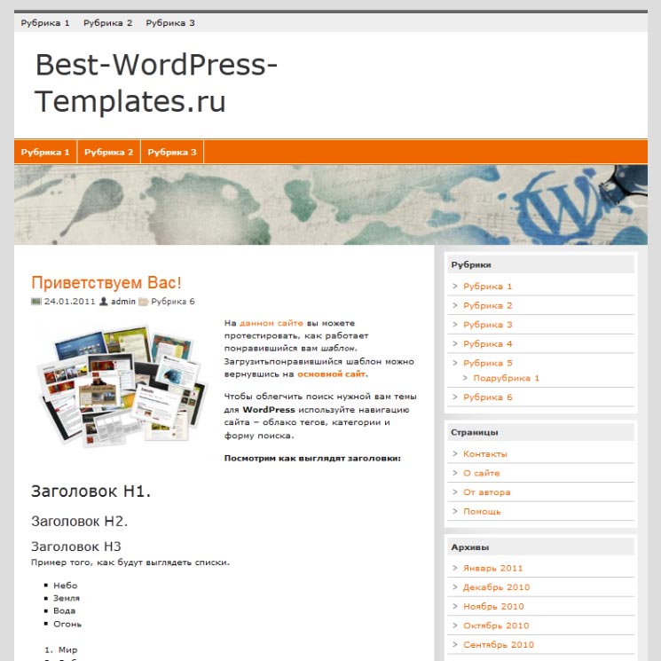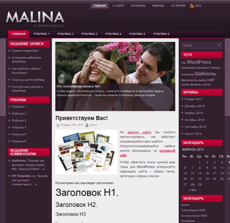Это домашняя страница темы с заголовком:
