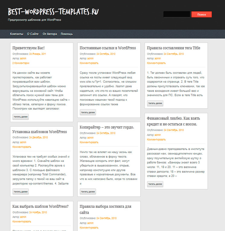 - Шаблон сетки: этот шаблон отображает содержимое в разметке в виде сетки (см. этот пример из темы Dara).