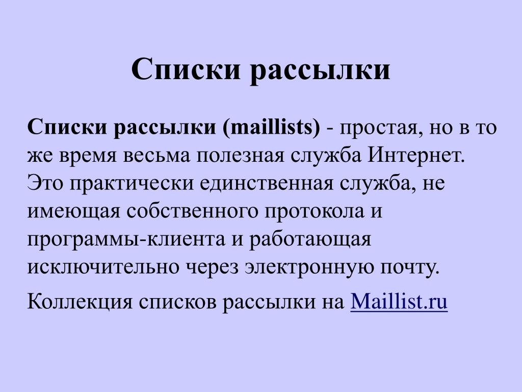 Утилита  maillist  используется для управления списками рассылки через CLI. По