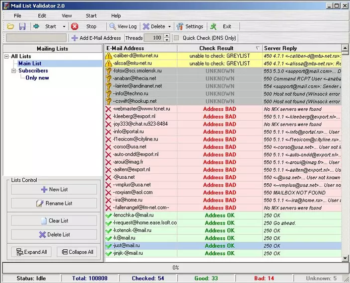 - добавление/удаление адресов электронной почты в/из списков рассылки