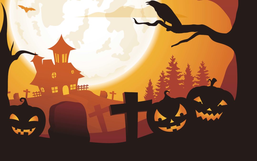 The colors of Halloween are orange and black, because orange is associated with the fall harvest, and the black one is associated with darkness and death.