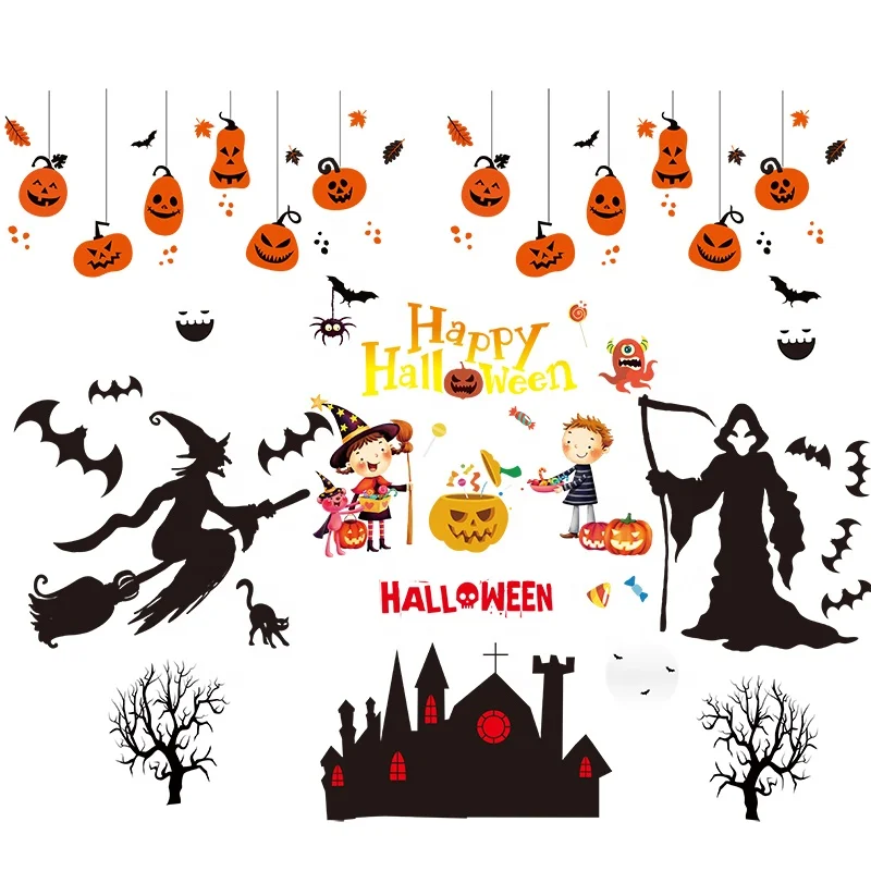 Помещения украшаются также пауками, змеями, совами, летучими мышами, черными кошками, ведьмиными метлами, силуэтами луны, скелетов, воронов.