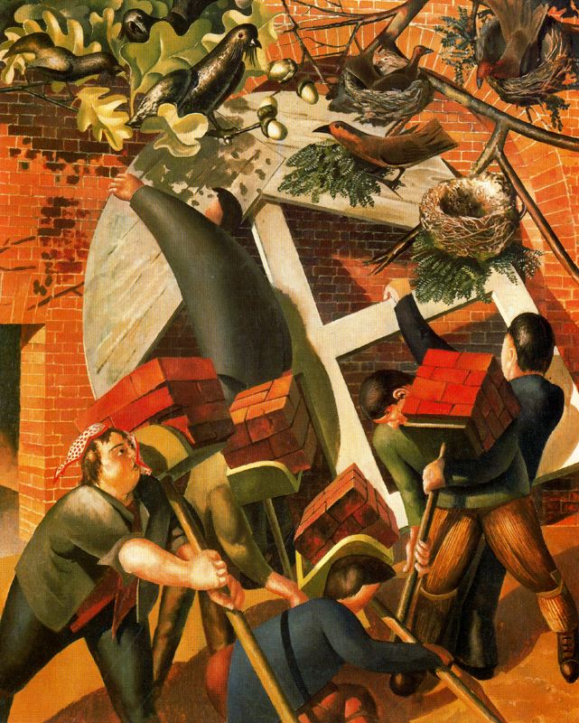 Несколько раз Спенсер обращался к теме «Воскресения»(1923-1926, гал. Тейт; полиптих 1945-1950). Одержимое и визионерское искусство Спенсера можно считать запоздалой фазой реализма прерафаэлитов.