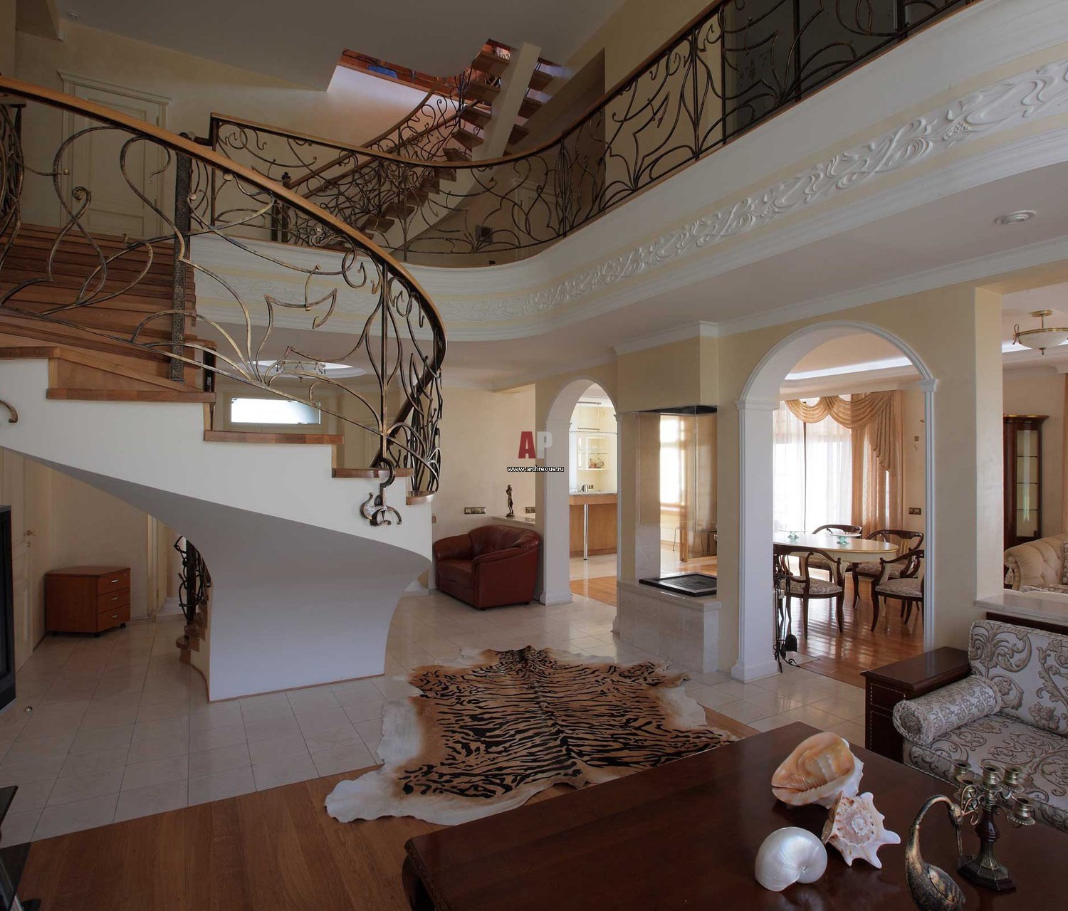 Π‘ ΠΏΡΠΈΡ ΠΎΠΆΠ΅ΠΉ Π½Π°ΡΠΈΠ½Π°Π΅ΡΡΡ Π΄ΠΎΠΌ, Π° ΠΌΠΎΠ΄Π΅ΡΠ½ Π½Π°ΡΠΈΠ½Π°Π΅ΡΡΡ Ρ Ρ ΡΠ΄ΠΎΠΆΠ΅ΡΡΠ²Π΅Π½Π½ΠΎΠΉ ΡΠΎΡΠΏΠΈΡΠΈ ΠΈ Π»ΠΈΠ°Π½. ΠΠ΅ΡΡΠ½ΠΈΡΠ° Ρ ΠΌΠ΅ΡΠ°Π»Π»ΠΈΡΠ΅ΡΠΊΠΈΠΌΠΈ ΠΏΠ΅ΡΠ΅ΠΏΠ»Π΅ΡΠ΅Π½ΠΈΡΠΌΠΈ Π² ΠΏΠ΅ΡΠΈΠ»Π°Ρ ΠΈ ΠΏΠ»Π°Π²Π½ΡΠΌΠΈ ΠΈΠ·Π³ΠΈΠ±Π°ΠΌΠΈ Π² ΡΡΡΡΠΊΡΡΡΠ΅ ΡΡΠ°Π·Ρ ΠΏΠΎΠ΄Π°ΡΠΈΡ ΠΎΡΡΡΠ΅Π½ΠΈΠ΅ ΡΡΠΈΠ»Ρ. Π‘ΡΡΠΏΠ΅Π½ΠΈ Π»Π΅ΡΡΠ½ΠΈΡΡ Π»ΡΡΡΠ΅ ΠΎΡΠΎΡΠΌΠΈΡΡ Π² ΠΎΠΊΡΡΠ³Π»ΠΎΠΌ Π²Π°ΡΠΈΠ°Π½ΡΠ΅.