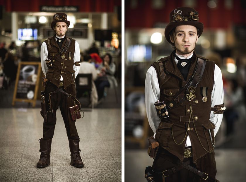 На сегодняшнем стимпанк-мероприятии вы увидите что угодно: от функциональных крыльев с заводным механизмом до викторианского ремикса принцессы Леи. Костюмы в стиле стимпанк являются одними из самых сложных и оригинальных, которые вы увидите на фан-конвенциях, но основные принципы по-прежнему легко узнать: силуэты в викторианском стиле, кожа, пряжки, поддельные доспехи, ретрофутуристическое оружие и много бронзы и коричневого. .