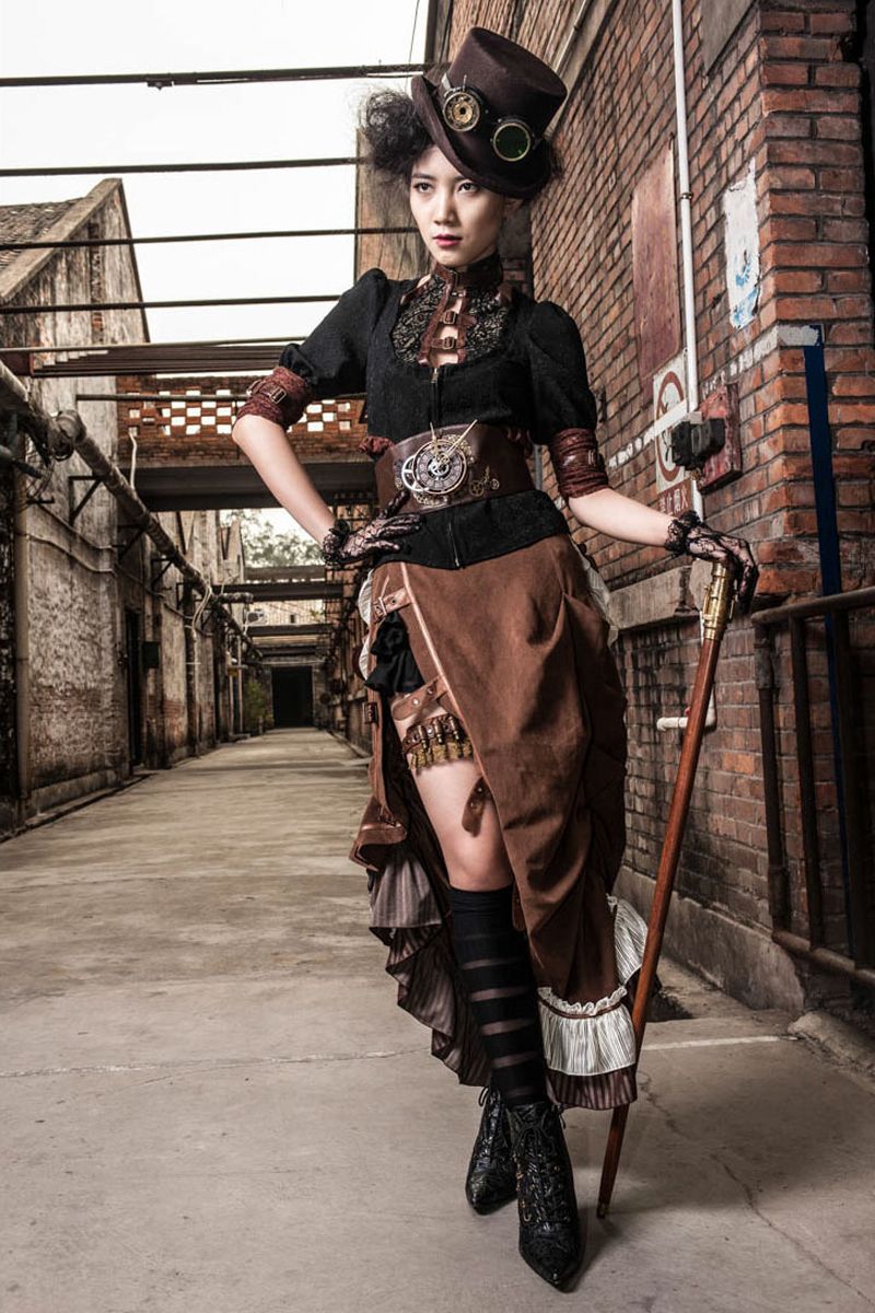 Вариация подойдет для вечеринки и костюмированного бала; - технический вариант — соответствует далекому прошлому викторианской эпохи. Здесь нет места рафинированным вещам, в моде только жесткие корсеты и короткие многослойные юбки. При изготовлении аксессуаров стараются приблизиться к старине, поэтому используют металлические детали, а не пластмассовую атрибутику. Ношение подобного костюма оставляет неприятные для тела ощущения, отрицает само понятие комфорта.