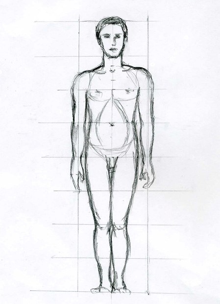 Для того чтобы правильно изобразить фигуру человека, необходимы обширные знания анатомии, понимание связи внешней формы и внутреннего содержания. Скульптор А. С. Голубкина подтверждает это словами: «Чтобы понять какую-нибудь машину, ее мало срисовать и скопировать, ее надо разобрать и собрать, поняв каждую ее часть, потому что там нет ни винта, ни выемки без специального назначения. Если вы так же подойдете к устройству человеческого тела, то увидите такую изумительную мудрость и красоту его устройства, что только пожалеете, что не знали этого раньше». Однако мы на сегодняшнем занятии не станем углубляться в анатомическое строение человека, а попробуем изобразить его наиболее простым способом.