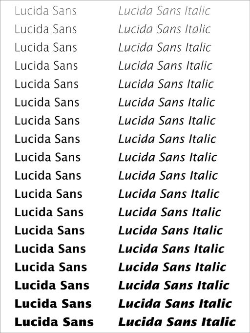 стиль шрифта— позволяет выбирать междунормальным,курсивоминаклоннымстилями шрифта. Наклонный в основном такой же, как курсив, но использует те же глифы, что и обычный шрифт, только наклонный. -