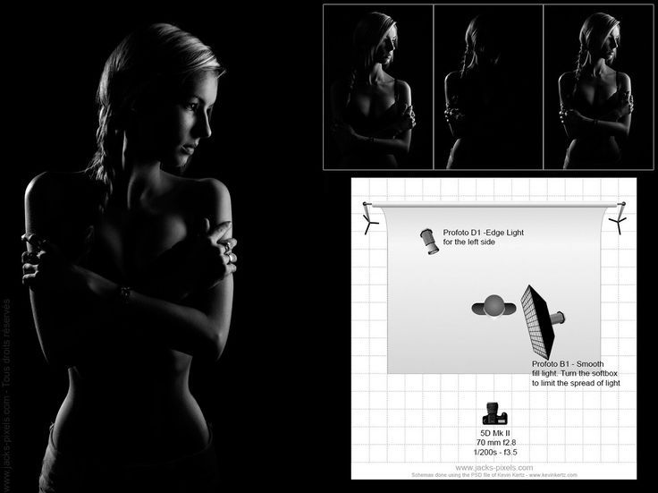 Для черного фона попробуйте использовать приглушенное освещение. Этот вид освещения использует тени и более темные тона. Это отлично подходит для мрачных черно-белых портретов!
