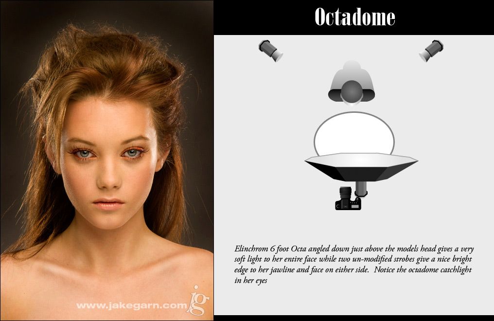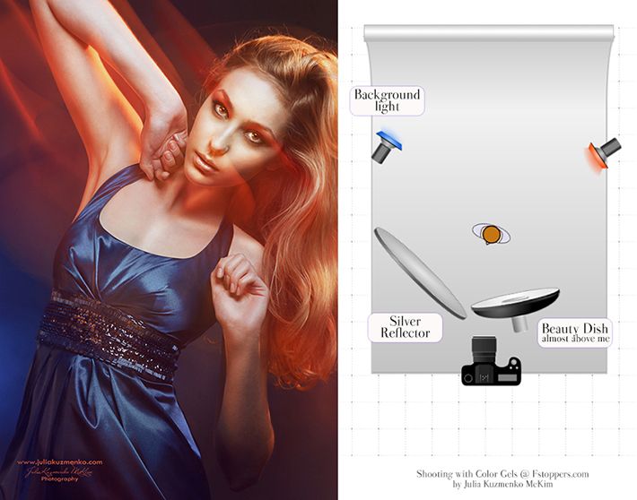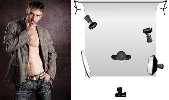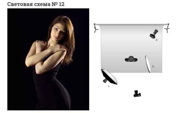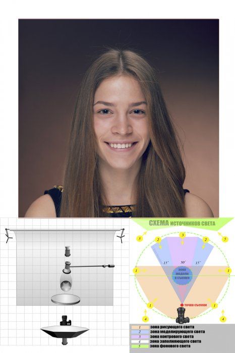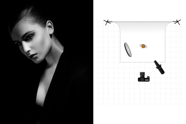 Схема используется для fashion съёмки, портретной, съёмки для фотостоков.