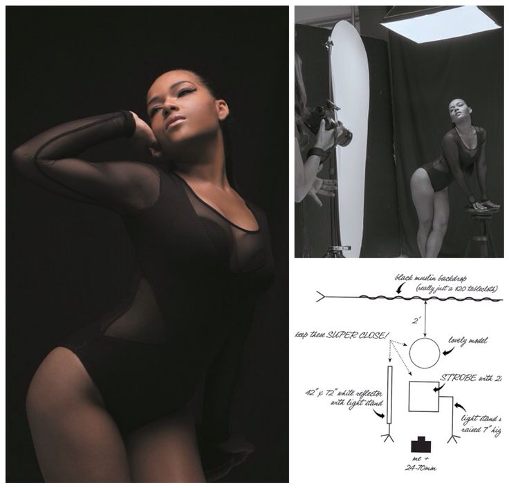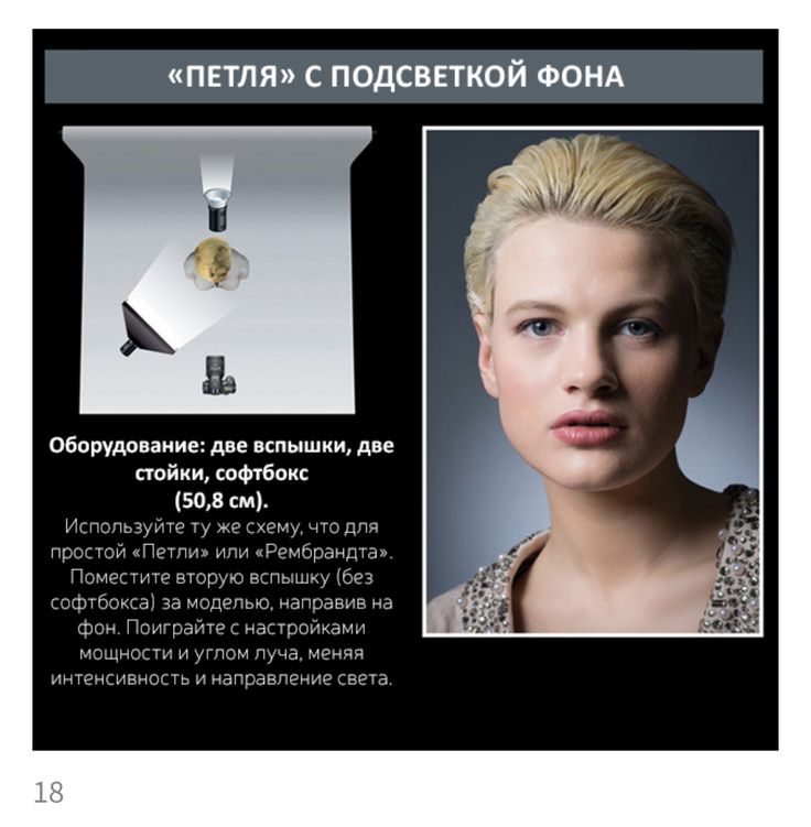Но в чём отличие? Разница в фоновом освещении. За моделью устанавливают 2 источника света, которые находятся под углом 45 градусов по отношению к фону. При этом у фонового освещения должна быть интенсивность выше на 1–2 ступени по экспозиции, чем у основного источника.
