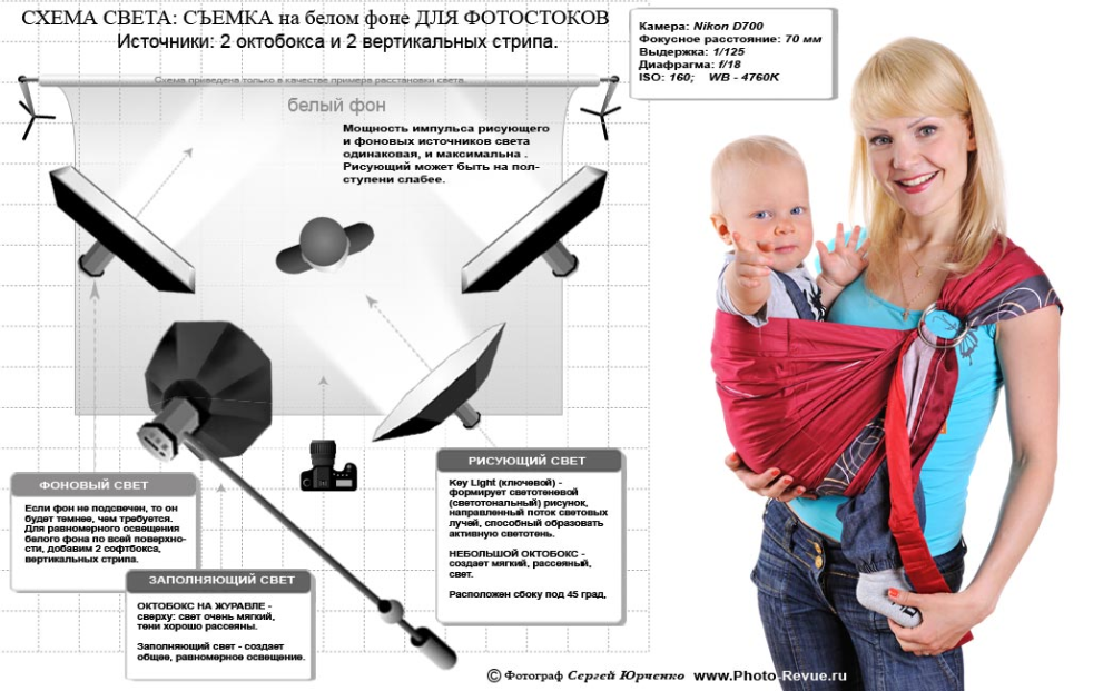 Задача — поставить его так, чтобы он освещал левую часть фона; - октобокс — ставится за спиной фотографа. Лучше выбрать с большим диаметром (1,5 м). Он нужен для формирования теней;