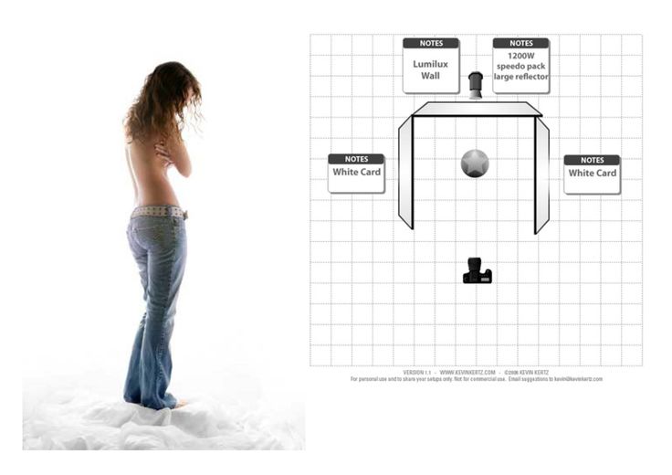 Белые панели выполняют функцию контрового света, отражая падающий от рисующего свет. Фон получается абсолютно белым, без тени от модели.