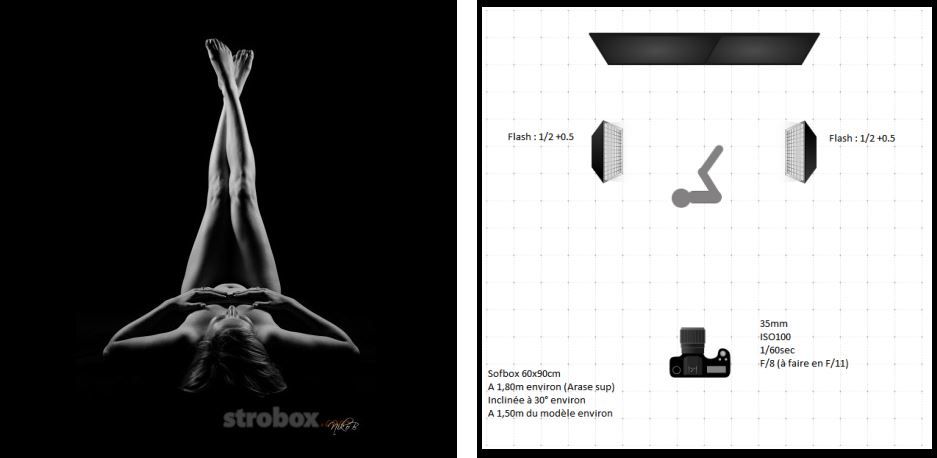 - Схема 3 Светильник с октобоксом + ростовой стрипбокс (съемка в полный рост)
