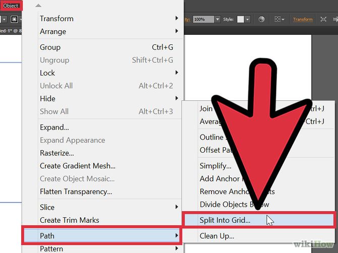 Π¨Π°Π³ 2: ΠΡΠ±Π΅ΡΠΈΡΠ΅ ΠΏΡΡΠΌΠΎΡΠ³ΠΎΠ»ΡΠ½ΠΈΠΊ, ΠΏΠ΅ΡΠ΅ΠΉΠ΄ΠΈΡΠ΅ Π² Π²Π΅ΡΡ Π½Π΅Π΅ ΠΌΠ΅Π½Ρ ΠΈ Π²ΡΠ±Π΅ΡΠΈΡΠ΅ Object > Path > Split to Grid .