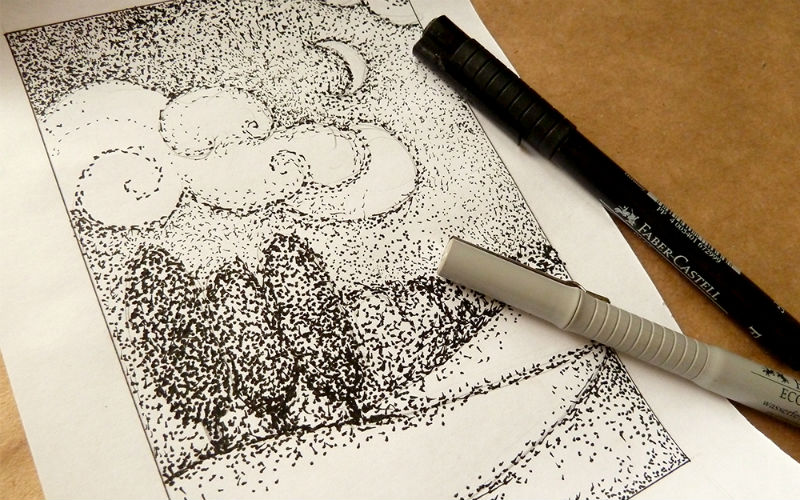 Вы также можете использовать штриховку для добавления теней к своим рисункам. Точечный рисунок — это когда вы используете маленькие точки, чтобы создать иллюзию тени.