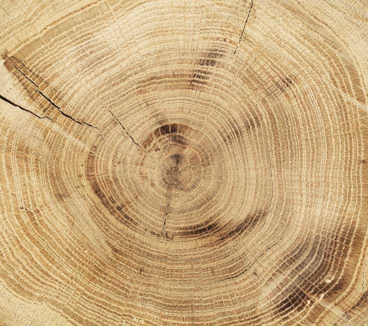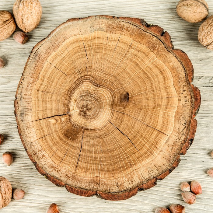 Все знают что дуб дерево твердое, стойкое к гниению. На срезе ствола всегда очень интересные радиальные лучи. Плотность дуба 700 кг/м3.