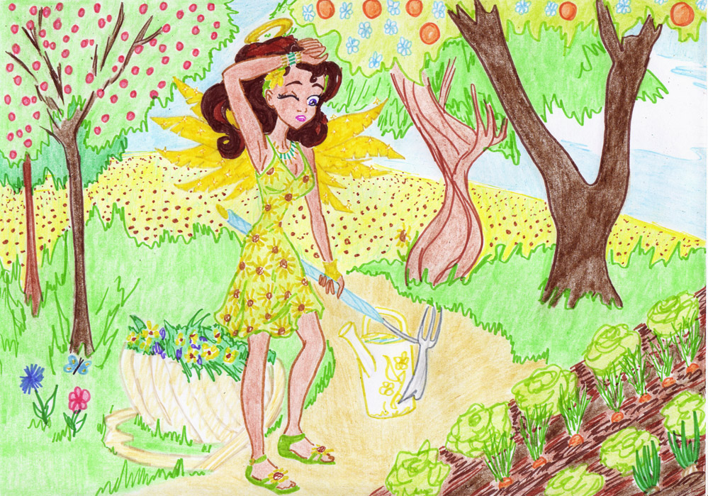 Рисунок лето цветными карандашами