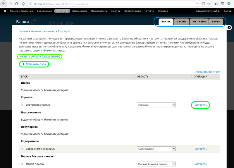 Зачем нужны остальные вкладки на странице оформления в Drupal мы разберем в следующем уроке.